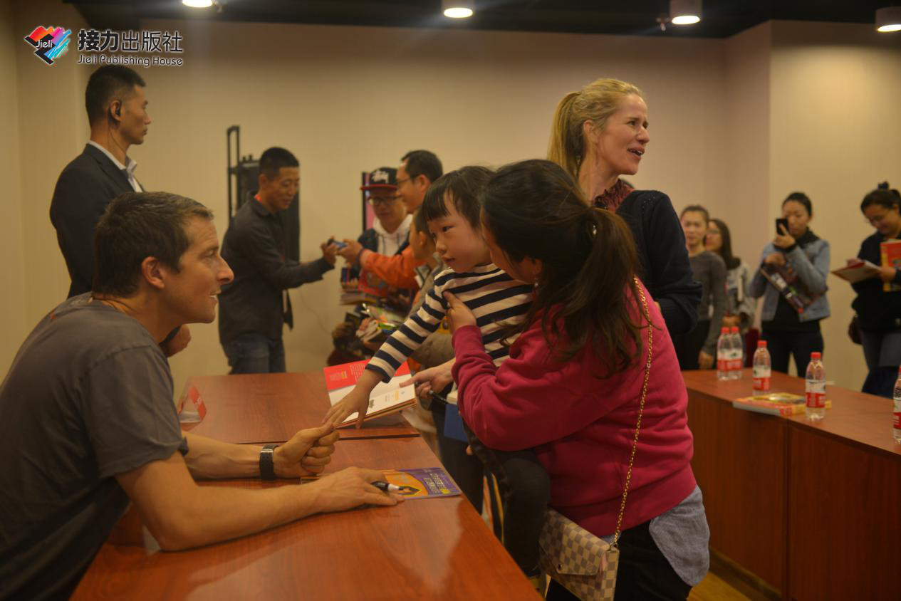 10月11日下午,贝尔来到北京市百万庄图书大厦,为几百名“荒野求生”系列的读者签名。这些读者中有4岁的孩童,还有70多岁的老爷爷老奶奶,还有不少粉丝从上海、天津、广州、深圳等全国好几个城市赶来。